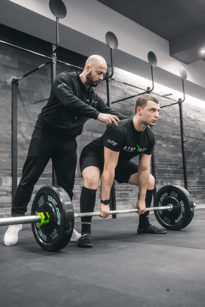 Allenamento dal vivo o On-line ( a secoda delle necessità dell’altleta) in presenza del Coach durante il quale viene insegnato il Warm-Up (riscaldamento) creato con il nostro metodo; viene eseguito il lavoro d’impostazione tecnica sulle tre alzate fondamentali (Squat, Distensioni su Panca e Stacco da terra) e vengono insegnati gli input da utilizzare negli esercizi di muscolazione. Inoltre vengono raccolti tutti i dati necessari per creare la programmazione (problematiche articolari e/o muscolari, carenze muscolari, carenze tecniche)