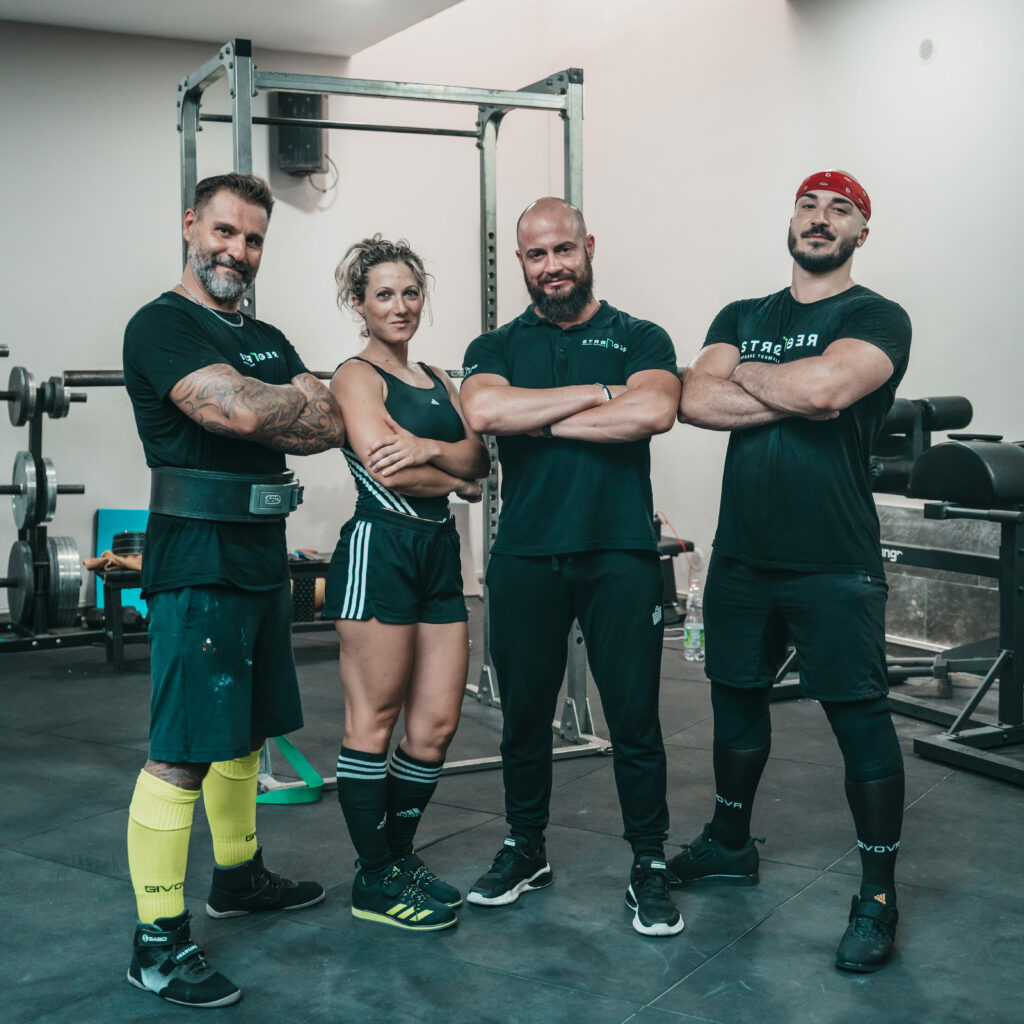 Tre Atleti agonisti che si allenanano frequentemente insieme e sono amici anche al di fuori della palestra.